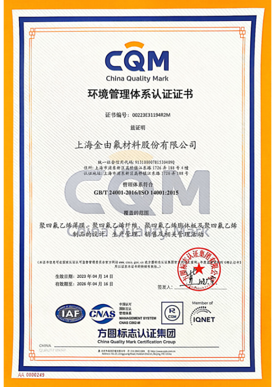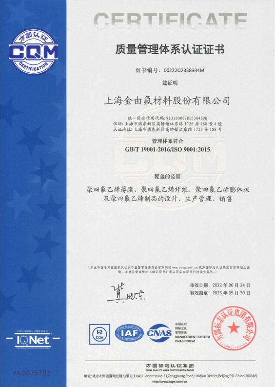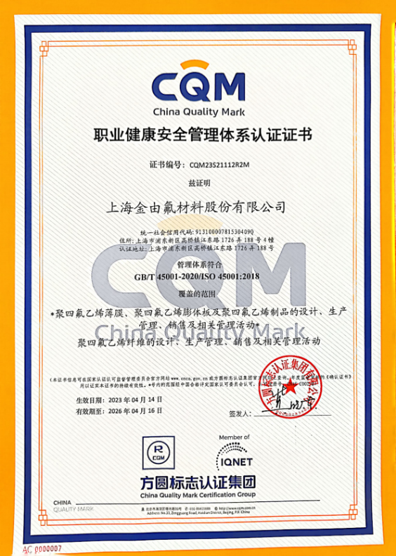 上海金由氟材料股份有限公司以卓越的品质、持续的创新和卓越的服务,引领着材料科技的前进,为客户和行业的可持续发展贡献一份力量。